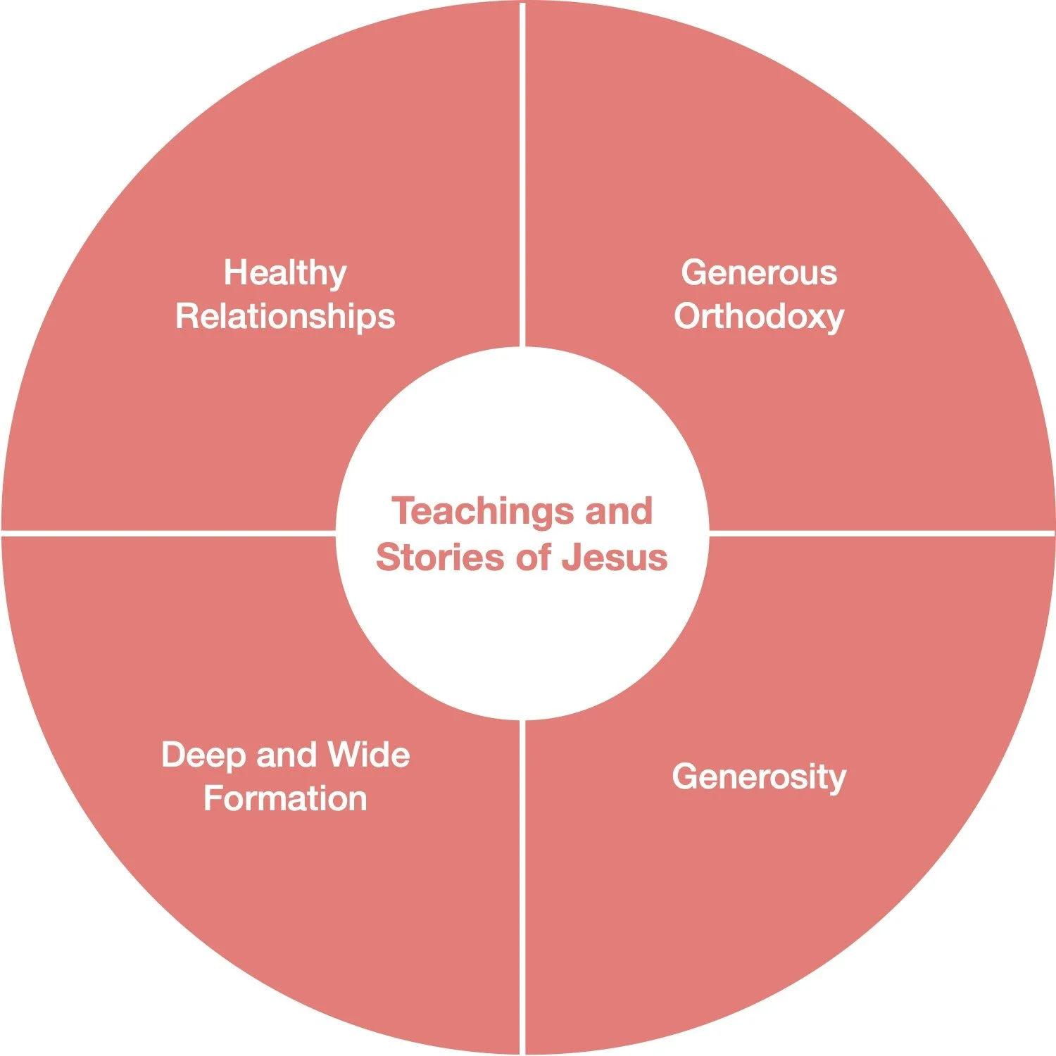 Teachings and Stories of Jesus — because Jesus is at the heart of everything we believe and do, we will commit to being a community rooted in and formed by his incarnation, life, death, and resurrection.